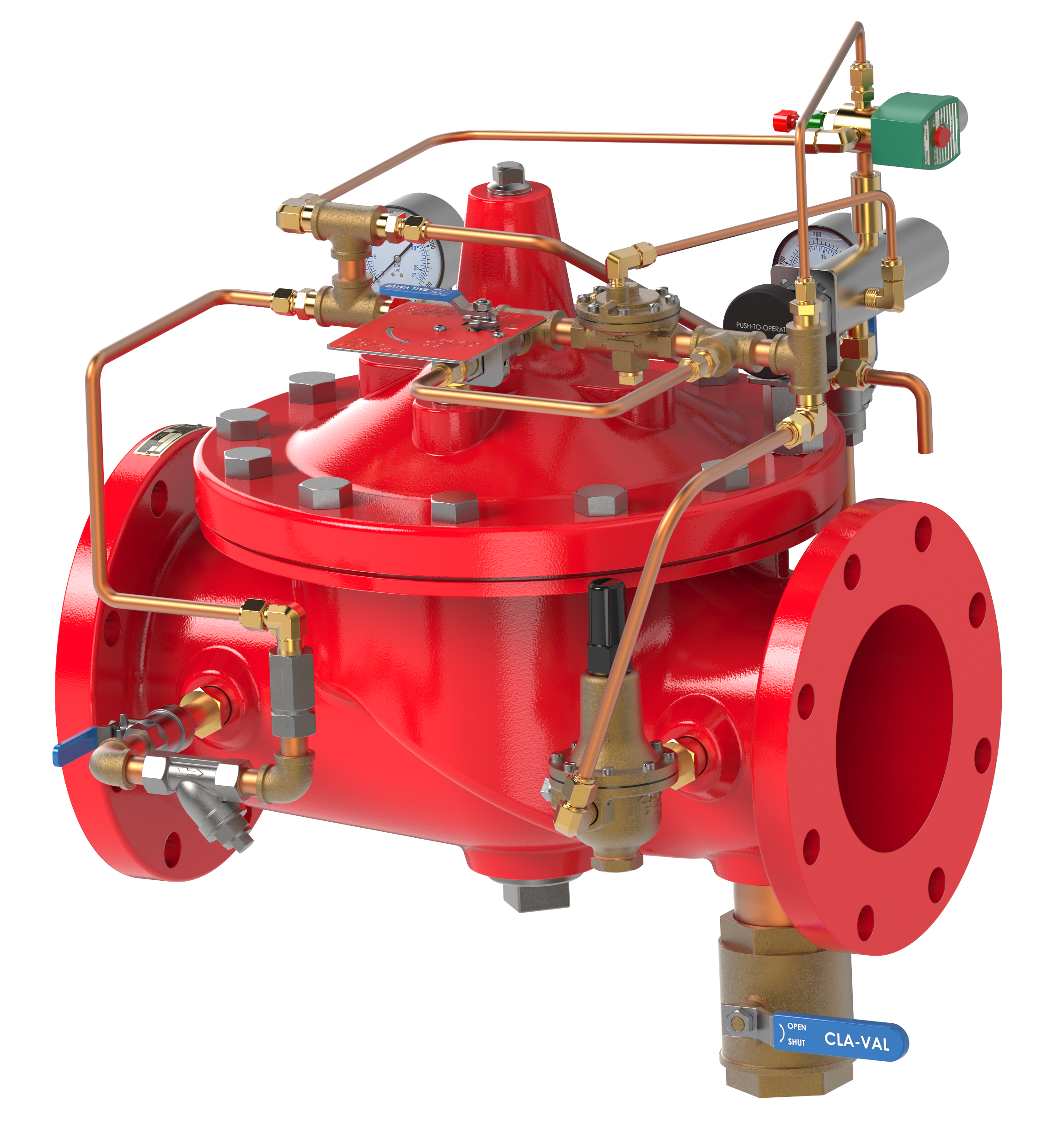 The Cla-Val Model 100G-UPRL is an electrically actuated hydraulic on/off regulating deluge valve with latching pilot designed for use in multiple applications. The 100G-UPRL can be actuated locally by relieving cover pressure through our EDVR (Emergency Deluge Valve Release) or remotely via solenoid. The 100G-UPRL will need to be reset locally by reengaging the latching pilot.