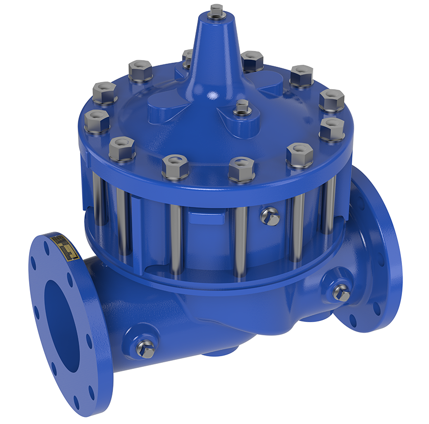 The Cla-Val Model 100-02 is a hydraulically operated, diaphragm actuated, globe or angle pattern valve. It consists of four major components: body, intermediate chamber, diaphragm assembly and cover. The diaphragm assembly is the only moving part.